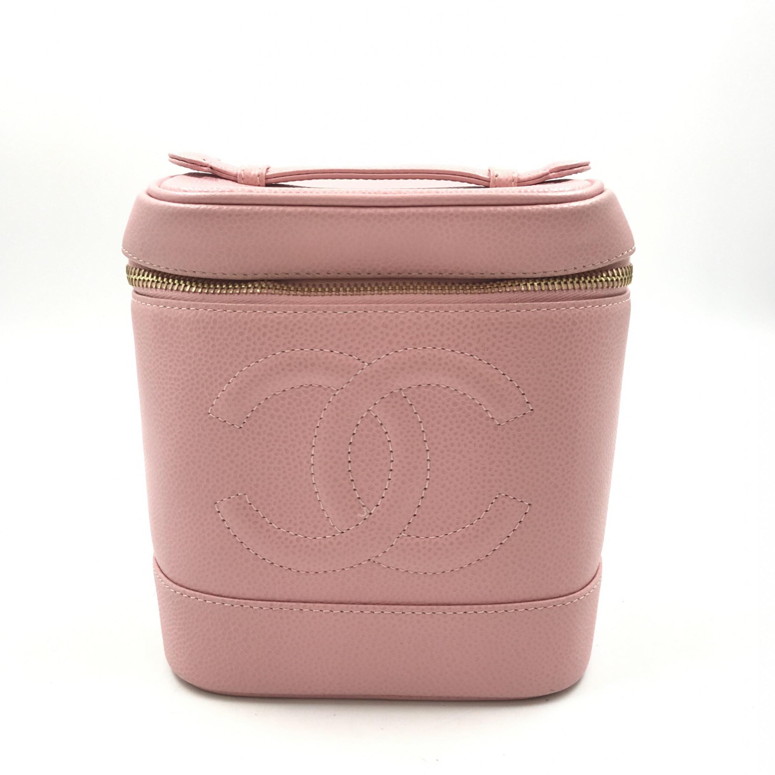 Chanel Pink Caviar Vanity Case With Zipper